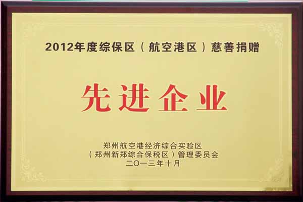 瑞光包裝榮獲“2012年度綜保區(qū)(航空港區(qū))慈善捐贈先進企業(yè)”