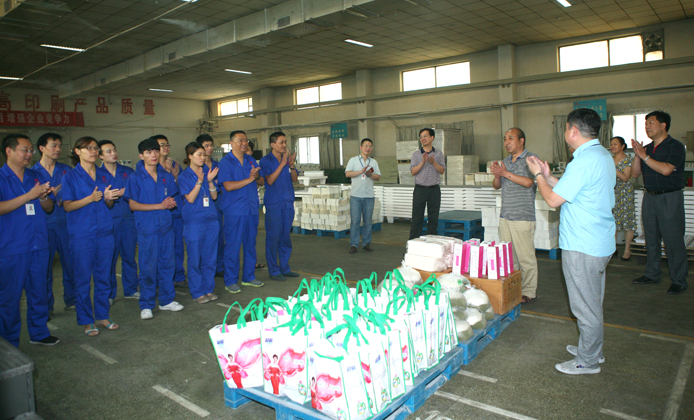 2015年619日上午,由鄭州市二七區(qū)總工會開展的“2015年夏季送清涼活動”走進(jìn)河南省瑞光印務(wù)股份有限公司正式拉開帷幕,區(qū)總工會常務(wù)副主席楊東啟一行7人以及瑞光印務(wù)總經(jīng)理王在東和公司部分一線員工參加了這次活動。
