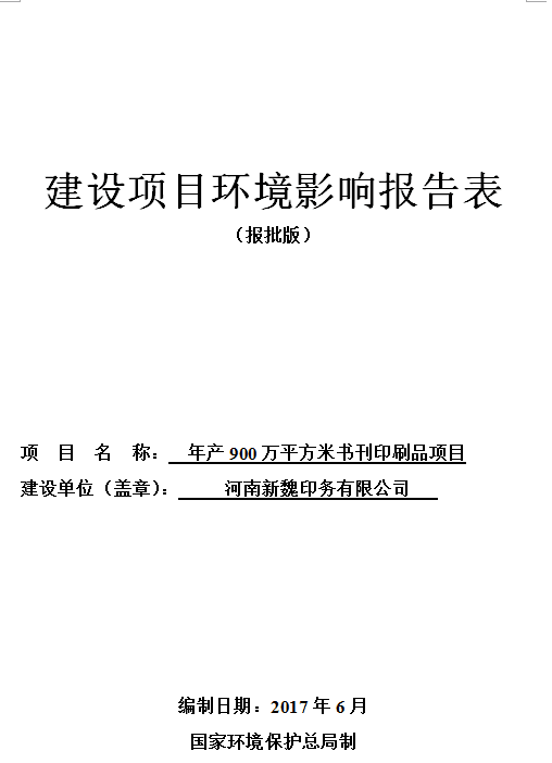 河南新魏印務(wù)有限公司年產(chǎn)900萬(wàn)平方米書刊印刷品項(xiàng)目