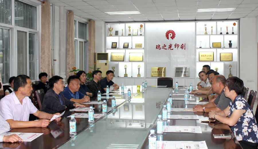 隨后,雙方在公司會議室進行了座談。座談會上,雙方領導就目前印刷包裝行業(yè)的現(xiàn)狀、面臨的問題和困難以及今后的發(fā)展形勢、方向和動態(tài)等事項進行了深入的交流。最后,李會長對瑞之光印刷公司的熱情接待表示了衷心的感謝!