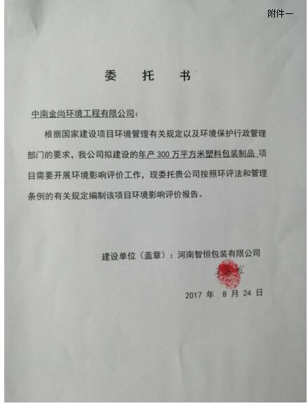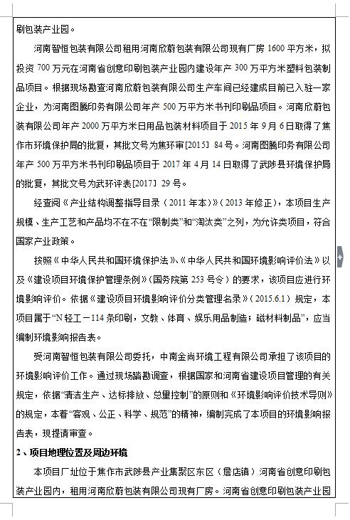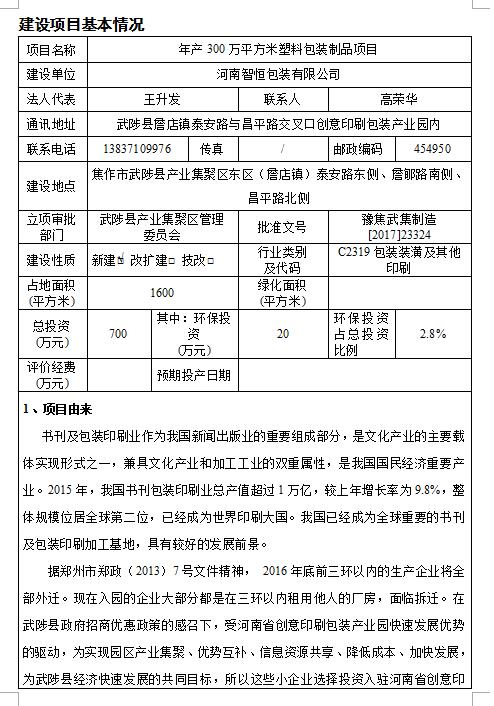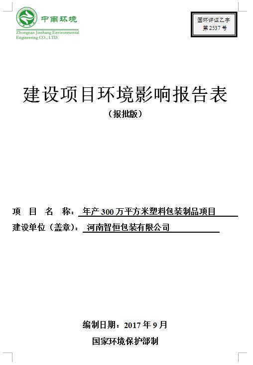 河南智恒包裝有限公司年產(chǎn)300萬平方米塑料包裝制品項目