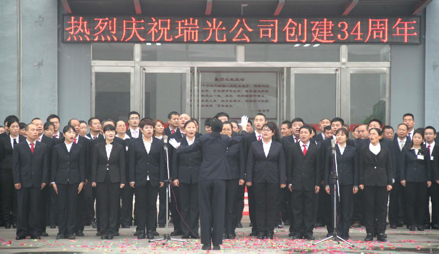 在這金秋送爽,碩果飄香的金秋十月,我們懷著無比激動和喜悅的心情迎來了瑞光公司創(chuàng)建三十四周年的喜慶日子。三十四年前的今天,我們放飛了激情與夢想;三十四年后的今天,我們收獲了榮光和希望。在這個喜慶的日子里,我謹(jǐn)代表公司董事會向辛勤工作在公司各個崗位上的員工及你們的家屬,表示衷心的感謝!也向長期關(guān)心和支持我們的各界朋友表示真誠的敬意!