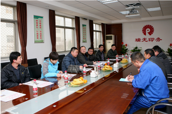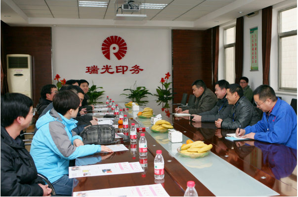圖為瑞光印務總經理王在東及公司有關人員與考察領導交流