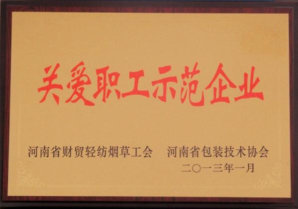 【摘要】   日前,瑞光包裝公司被河南省財貿(mào)輕紡煙草工會和河南省包裝技術(shù)協(xié)會共同評為“關(guān)愛職工示范企業(yè)”。
