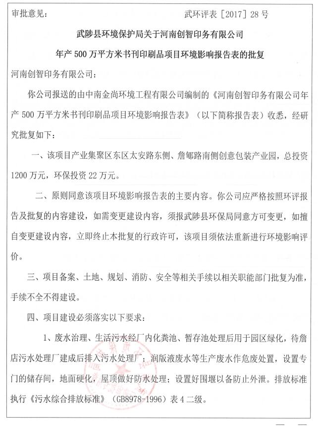 河南創(chuàng)智印務有限公司 書刊印刷品項目竣工環(huán)境保護驗收報告