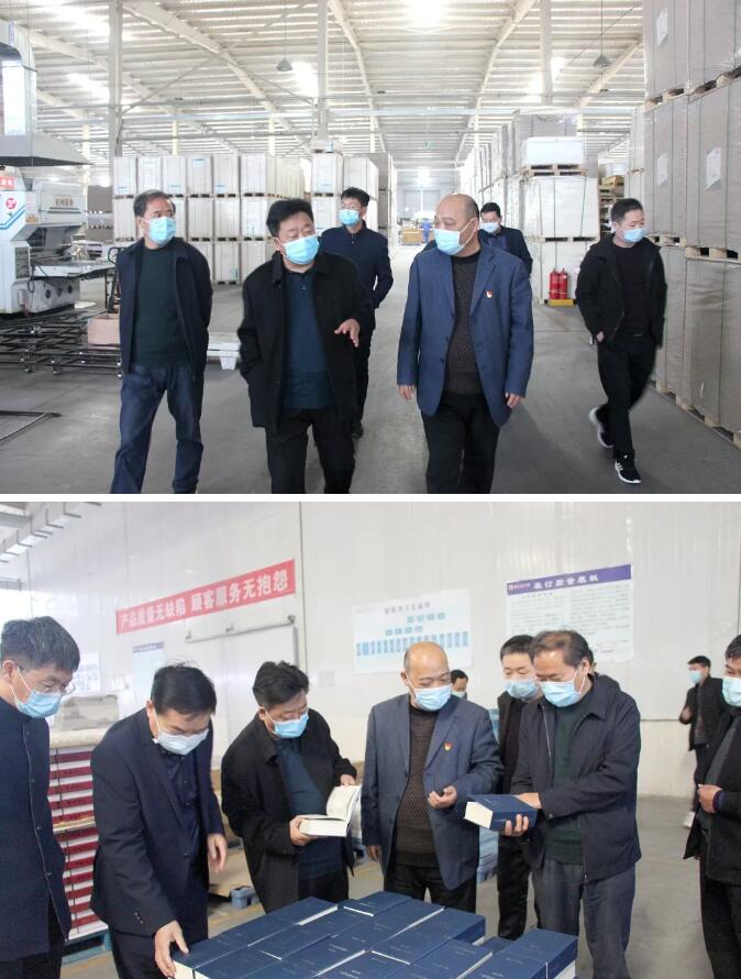 來訪領(lǐng)導(dǎo)參觀了瑞之光印刷公司的生產(chǎn)車間,王子峰董事長就產(chǎn)業(yè)園的建設(shè)、招商、運營和瑞之光印刷公司的生產(chǎn)經(jīng)營等情況向各位領(lǐng)導(dǎo)做了匯報。